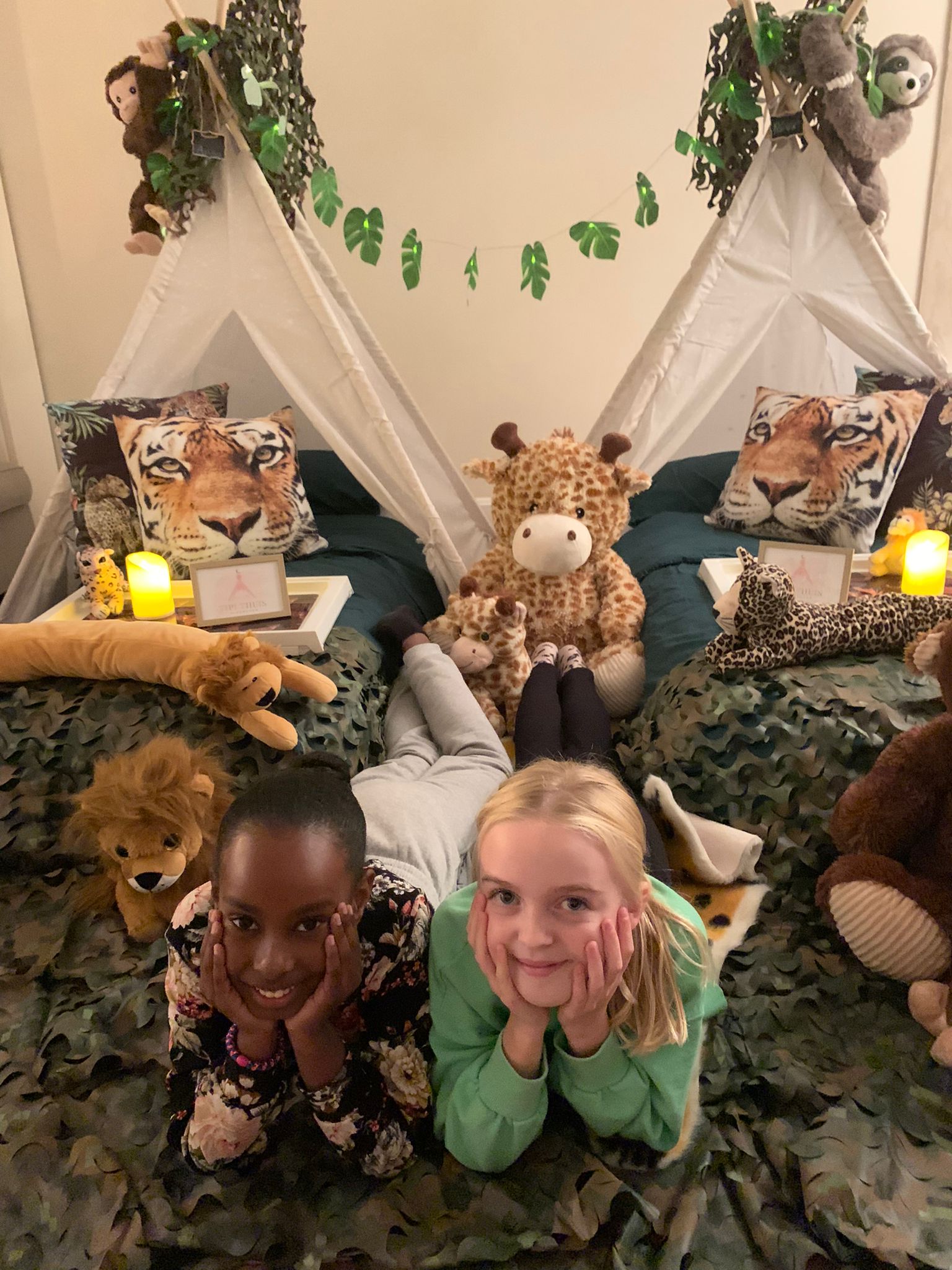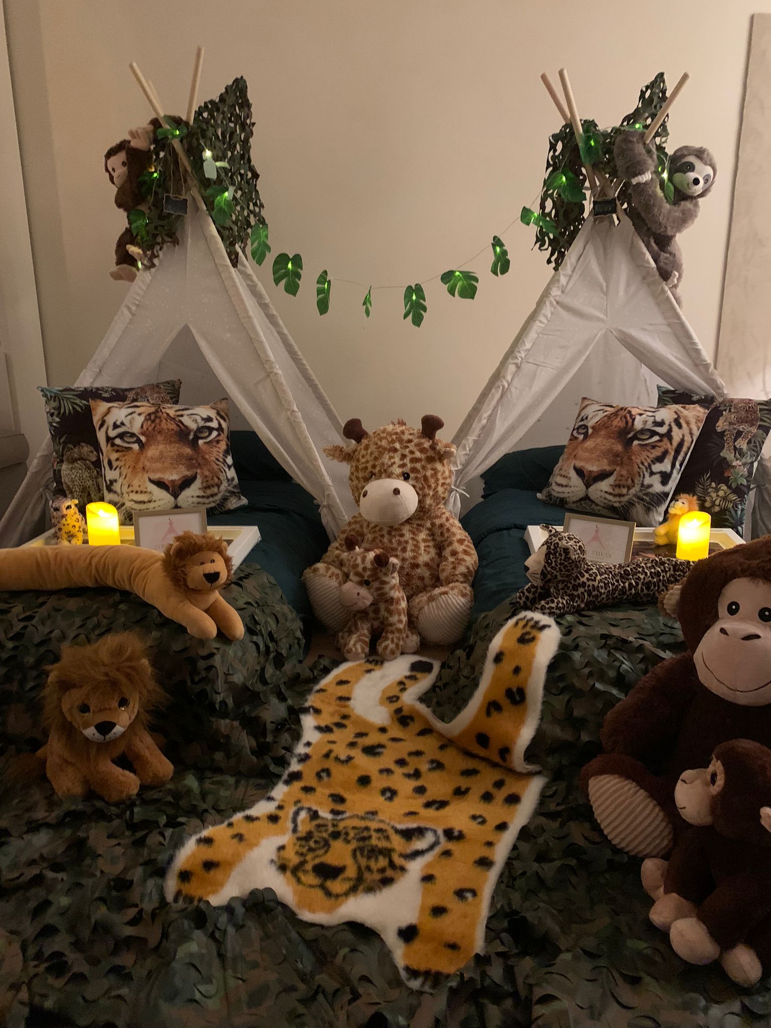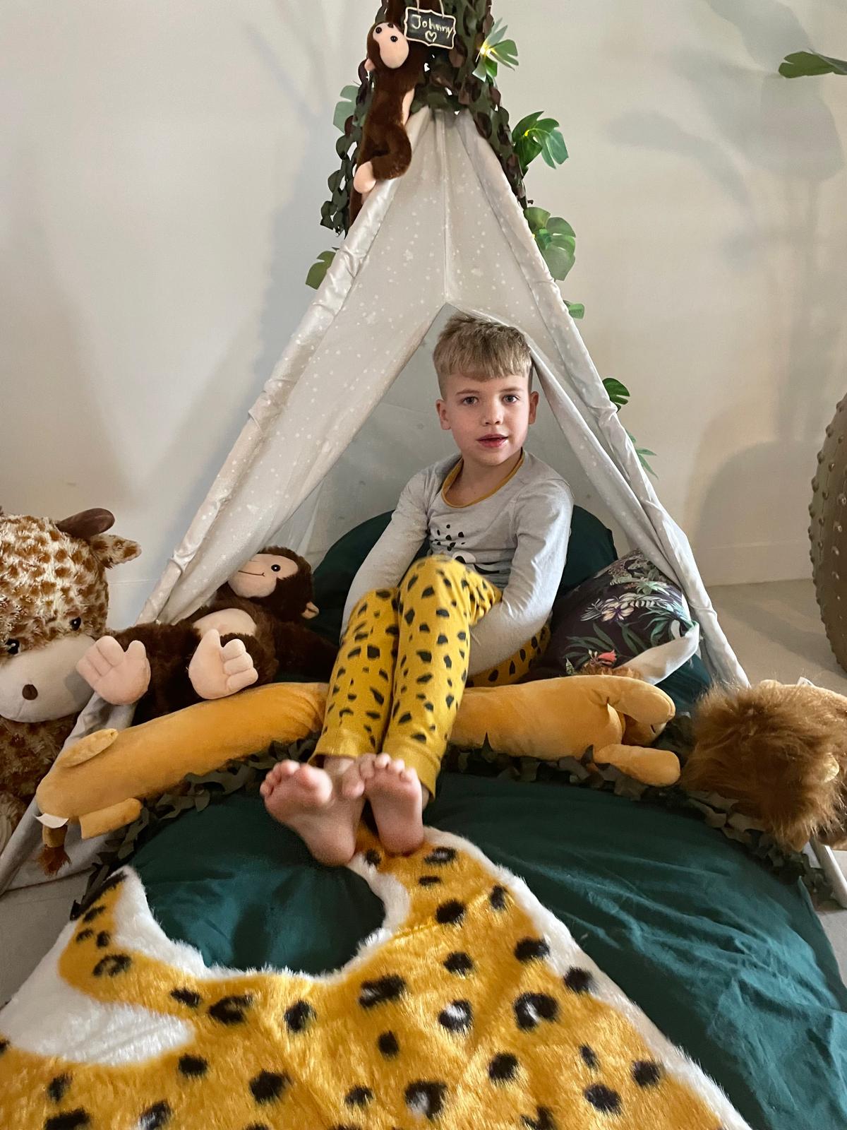 Kampeer in een tipi midden in de jungle en beleef een onvergetelijk feest vol wilde momenten. Maak het extra leuk met jungle-decoraties, comfortabele kussens en een compleet beautymandje. Een avontuur dat je nooit zult vergeten!
